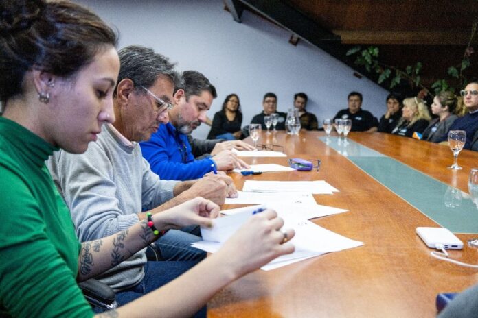 El encuentro contó con la participación del subsecretario de Asuntos Laborales y Gremiales, Fernando Starkloff; el secretario de Medio Ambiente y Desarrollo Sustentable, David Ferreyra; y el subsecretario de Gestión Administrativa de la Secretaría de Economía y Finanzas, Gonzalo Escobar, en representación del Ejecutivo municipal.